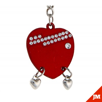 Брелок Сердце матовое со стразиками и сердечками.