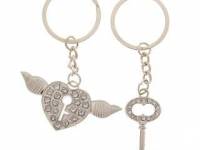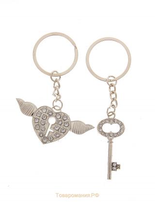 Брелок металл 2в1 пакет Сердце и ключик стразы.