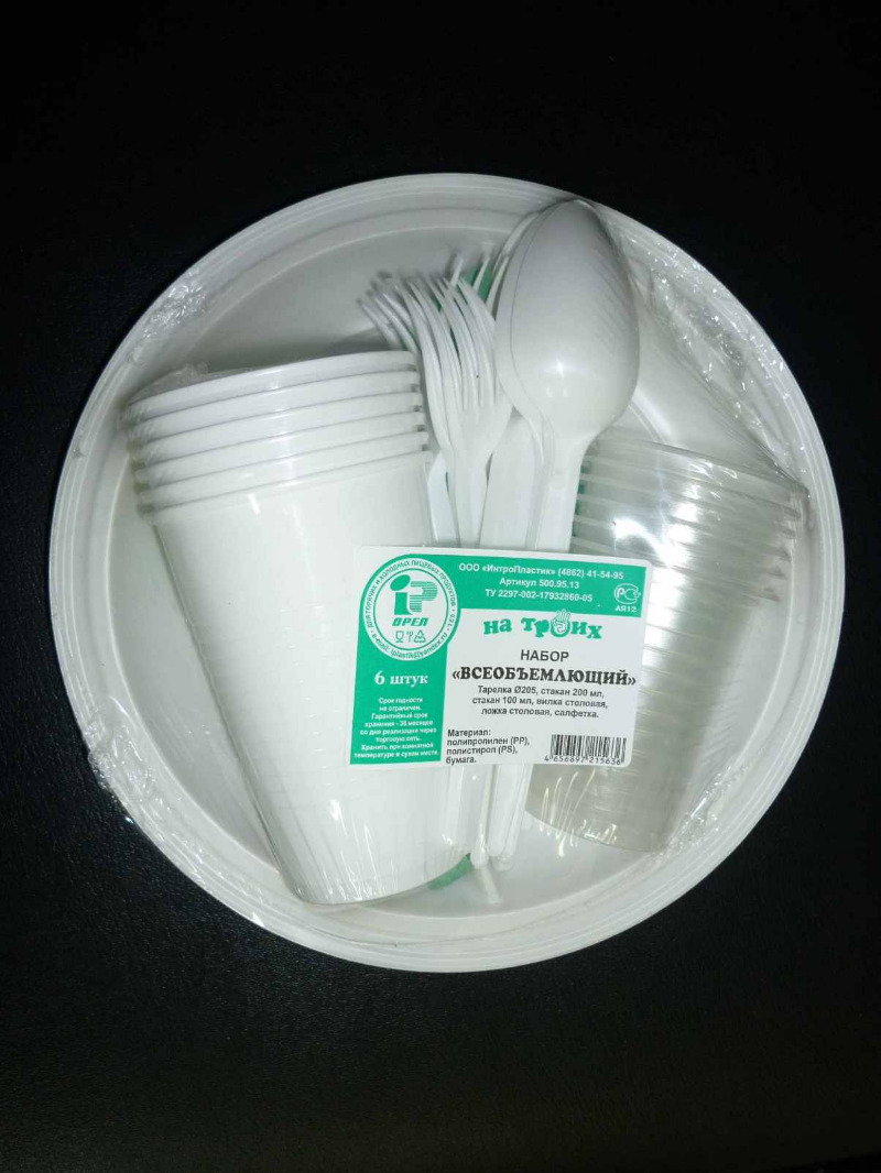 ... 100мл прозрачный 6 шт, вилка столовая 6 шт, ложка столовая 6 шт, салфет-