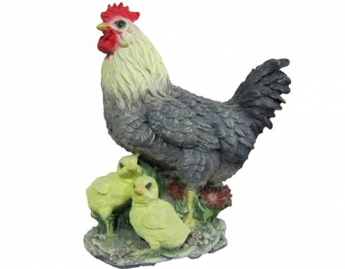 Декоративная садовая фигурка "Курица с цыплятами", цвет серый, высота