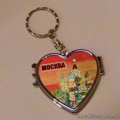 Сувенир - Китай / Сувениры с видами городов / Москва - Брелок-сердце с зеркалом Москва (уп. 12 шт.